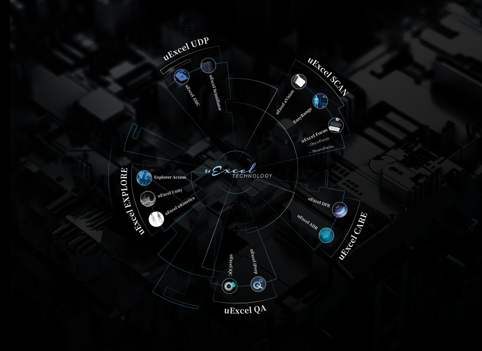 uExcel Technology 技术平台以源头级创 「 芯 」 与 「 无极 」 探测器为牵引,集结精密晶体制造工艺、智能传感器、AI 重建引擎等核心技术,打造具备 「 自由演进 」 能力的分子影像技术平台。实现卓越性能领航、多维赋能, 优化从患者、医生、技师到医院管理者全链使用体验,回应用户对功能性、易用性、安 全性、稳定性、科研力的深远需求。